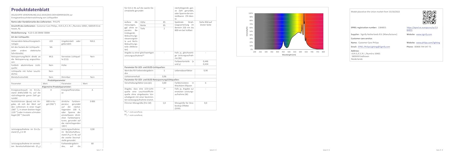 - Energieeffizienzklasse A: Energieeinsparung von bis zu 90 % im Vergleich zu herkömmlichen Leuchten