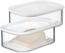 Die Mepal MODULA Käsedose im praktischen 2er Set bietet Ihnen mit einem Volumen von 2000 ml ausreichend Platz zur Aufbewahrung verschiedener Käsesorten. Die rechteckige Dose mit abgerundeten Ecken verfügt über einen transparenten Deckel, der einen direkten Blick auf den Inhalt ermöglicht. Der herausnehmbare Antikondenseinsatz sorgt für optimale Frische. Zudem ist die Dose lebensmittelecht, stapelbar und spülmaschinenfest.
