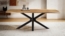 Der Esstisch 'Matrix' aus massiver Wildeiche bringt zeitlose Eleganz in Ihr Zuhause. Mit einer Plattenstärke von ca. 4 cm und einer gedrehten Kante vereint er ästhetisches Design mit Stabilität. Der stabile Doppel-X-Fuß aus schwarzem Metall sorgt für eine solide Basis. Mit den Maßen 76 cm Höhe, 200 cm Breite und 100 cm Tiefe bietet er ausreichend Platz für Familie und Gäste. Dieses nachhaltige Möbelstück wird zerlegt geliefert und lässt sich einfach zusammenbauen.