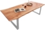 Der Esstisch Quinn aus massiver Akazie mit Baumkante und silbernem U-förmigem Metallgestell ist ein stilvoller Blickfang für Ihr Zuhause. Mit einer großzügigen Tischplatte von 200 x 100 cm bietet er Platz für 6-10 Personen. Die natürliche Holzmaserung und die individuelle Form machen jeden Tisch zu einem einzigartigen Unikat, das in jeden Essbereich passt.
