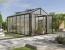 Stabiles und hohes Premium-Gewächshaus ZEUS Comfort von Vitavia mit einer Grundfläche von 11,9 m². Das Gewächshaus misst außen 258x465 cm und bietet durch die Firsthöhe von 250 cm und Traufenhöhe von 188 cm ausreichend Platz. Die Verglasung aus 10 mm HKP sorgt für hohe Windstabilität. Ausgestattet mit 3 Dachfenstern und einer breiten Doppelflügeltür (143x174 cm) ermöglicht es einen bequemen Zugang.