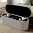 Dieser vielseitige Fußhocker mit den Gesamtmaßen 120 x 40 x 40 cm ist die ideale Ergänzung für Ihr Wohnzimmer, Schlafzimmer oder den Eingangsbereich. Er dient als Fußstütze, zusätzliche Sitzgelegenheit oder bequemer Sofasitz und bietet ein verstecktes Staufach für Decken, Kissen oder Bücher. Der weiche Teddy-Samtbezug in Grau sorgt für Eleganz und Komfort, während die stabile Konstruktion aus Metall und Sperrholz Langlebigkeit garantiert. Der Hocker wird komplett montiert geliefert.