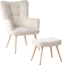 Eleganter Ohrensessel VEJLE in hellem Beige mit praktischem Fußhocker. Dieser weich gepolsterte Retro-Stuhl bietet höchsten Sitzkomfort und lädt zu entspannten Stunden in Ihrem Wohn- oder Schlafzimmer ein. Die hochwertigen Stoffbezüge aus 100% Polyester und das stabile Gestell aus Massivholz garantieren Langlebigkeit. Genießen Sie gemütliche Fernsehabende oder Lesestunden mit diesem stilvollen Set.