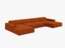 Das Micadoni Panorama-Sofa Jodie ist ein geräumiges 6-Sitzer-Modulsofa in einem strukturierten Stoff in Terrakotta. Es bietet eine angenehme Polsterung und eine tiefe, federnde Sitzfläche, die ideal zum Entspannen einlädt. Die konturierte Rückenlehne und breiten Armlehnen sorgen für zusätzlichen Komfort. Mit seinen niedrigen schwarzen Kunststofffüßen harmoniert es perfekt mit der gemütlichen Silhouette. Jodie ist die ideale Wahl für alle, die ein stilvolles und komfortables Sofa suchen.