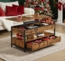Der VASAGLE höhenverstellbare Wohnzimmertisch vereint Funktionalität und Stil. Mit einem Lift-Top Design lässt sich die Tischplatte von 48 cm bis 63 cm verstellen, ideal für Arbeiten, Essen oder Entspannen. Der Tisch bietet viel Stauraum mit einer großen Tischplatte, drei versteckten Fächern und zwei Schubladen. Robuste Materialien garantieren eine maximale Belastbarkeit von 136 kg. Der industrielle Look mit vintagebraunem und schwarzem Finish wertet jeden Wohnraum auf.