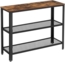 Der VASAGLE Konsolentisch LNT81BX vereint Funktionalität und Stil in einem schmalen Design. Mit den Abmessungen von 101,5 x 35 x 80 cm bietet er zwei Gitterablagen für zusätzlichen Stauraum. Das robuste Gestell aus schwarzem Stahl und die vintagebraune Holzspanplatte schaffen eine einladende Atmosphäre in Ihrem Zuhause. Ideal für Flur, Wohnzimmer oder Schlafzimmer, ist dieser Tisch stabil und einfach aufzubauen.