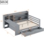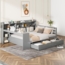 Dieses multifunktionale Schlafsofa in modernem Grau bietet eine optimale Lösung für platzsparende Wohnräume. Es kombiniert ein komfortables Doppelbett (140x200 cm) mit einem praktischen Schreibtisch und umfangreichen Stauraumoptionen. Die integrierte Steckdose mit USB-Anschlüssen ermöglicht das Aufladen von Geräten. Die massive Kiefernholzkonstruktion mit 15 robusten Latten sorgt für eine Tragfähigkeit von 150 kg. Mit den Gesamtmaßen von 245,5 x 165 x 100 cm vereint es Schlafkomfort und Arbeitsbereich in einem stilvollen Design.
