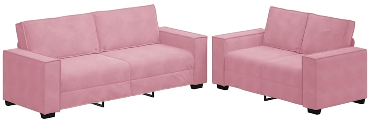 vidaXL 2-tlg. Sofagarnitur in Rosa aus Samt bietet einen stilvollen und komfortablen Platz zum Entspannen, Plaudern oder Fernsehen. Mit einem robusten Gestell aus Holz und Metall sowie breiten Armlehnen ist sie sowohl stabil als auch bequem. Die dick gepolsterten Sitz- und Rückenlehnen sorgen für ein angenehmes Sitzgefühl. Diese vielseitige Sofagarnitur passt perfekt in Wohnzimmer, Büros oder Gästezimmer.