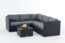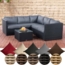 Die CLP Polyrattan Ecksofa-Garnitur Genero 5 mm in schwarz eisengrau bietet eine stilvolle Kombination aus klassischem Eckbank-Design und modernem Komfort. Die dick gepolsterten Sitz- und Rückenkissen sorgen für ein angenehmes Sitzerlebnis. Der quadratische Tisch ergänzt die Garnitur optimal und bietet ausreichend Platz für Snacks und Getränke. Ideal für den Außenbereich, ist die Garnitur pflegeleicht und wetterbeständig.