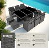 Das durchdachte Design der Rattan Sitzgruppe schafft nicht nur Ambiente, sondern auch Ordnung im Garten: Die Rückenlehnen können bei Nichtbenutzung eingeklappt und die Stühle so komplett unter den Tisch geschoben werden. Dieses Würfelsystem spart spielend leicht Zeit und Platz beim Aufräumen.