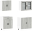 Diese 4-teilige Küchenzeile im eleganten Grau Sonoma optimiert Ihre Küche und bietet ausreichend Stauraum für Geschirr und Küchengeräte. Hergestellt aus robustem Holzwerkstoff, ist das Set pflegeleicht und verfügt über verstellbare Füße für eine individuelle Anpassung.