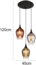 Diese LED Pendelleuchte überzeugt durch ihre ausgefallene Form und dem stilvollen Mix aus buntem Glas und schwarzem Metall. Der Ø45cm Baldachin der Pendelleuchte besteht aus schwarzem Metall; die 23cm hohen pokalförmigen Lampenschirme bestehen aus Echtglas in den Farben Gold, Kupfer und Rauchglas mit Spiegeleffekt, welche durch ihren schimmernden Look für ein außergewöhnliches Lichtspiel sorgen und ein warmes, angenehmes Licht spenden. Egal ob als dekorative Esstischlampe oder als Blickfang über dem Couchtisch im Wohnzimmer: diese Pendelleuchte sorgt garantiert für einen neuen Eyecatcher in Ihrem Wohnbereich!Ausgestattet mit E27 Fassungen wird die Leuchte mit drei passenden LED Leuchtmitteln mit jeweils einer Leistung von 6 Watt und 600 Lumen in Warmweiß geliefert.