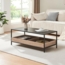 Eleganter Couchtisch in Schwarz/Eicheoptik, der Ihrem Wohnraum ein modernes Ambiente verleiht. Mit einer großzügigen Tischplatte und zwei unteren Ablagefächern bietet er ausreichend Platz für Bücher, Zeitschriften und mehr. Die vier robusten Tischbeine sorgen für Stabilität, während die pflegeleichte Oberfläche eine einfache Reinigung ermöglicht. Der unkomplizierte Aufbau wird durch die beiliegende Anleitung unterstützt.