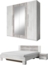 - Kleiderschrank: 4-türig, mit 2 Spiegelmitteltüren, 1 Kleiderstange, 1 Wäscheboden, 4 Einlegeböden, Griffe aus Kunststoff, Abmessungen: B/T/H: 228 cm / 58 cm / 214 cm