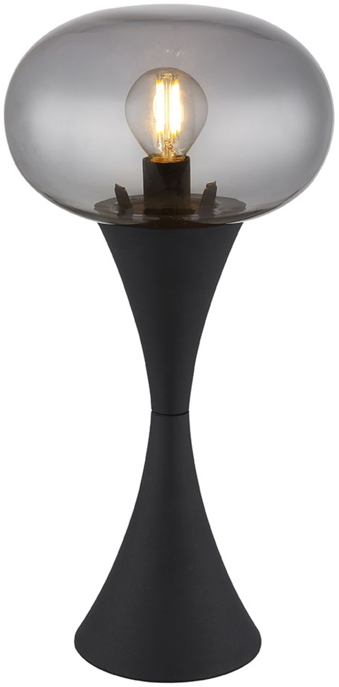 Tischleuchte, Schwarz, Rauchglas, H 36,9 cm