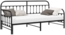 vidaXL Tagesbettrahmen mit Kopfteil in Schwarz 90 x 190 cm aus Stahl ist ein modernes Möbelstück, das Eleganz und Funktionalität vereint. Hergestellt aus hochwertigem Stahl mit einer matten Pulverbeschichtung, bietet es Stabilität und Langlebigkeit. Mit einem stabilen Lattenrost und kräftigen Quadratbeinen ist es ideal für Schlafzimmer oder flexible Räume. Tagsüber dient es als gemütliche Lounge, nachts verwandelt es sich in ein bequemes Bett für Gäste.