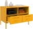 Dieser robuste TV-Schrank im Industrie-Stil in Senfgelb ist eine zeitlose Ergänzung für Ihr Schlafzimmer oder Wohnzimmer. Der Rahmen aus kaltgewalztem Stahl bietet nicht nur eine glatte Oberfläche, sondern auch hohe Festigkeit und präzise Verarbeitung. Mit zwei Fächern und zwei Schubladen bietet er reichlich Stauraum für Ihre Zeitschriften, Bücher und Fernbedienungen. Die verstellbaren Stellfüße sorgen für Stabilität und Gleichgewicht, während die einfache Reinigung mit einem feuchten Tuch den Pflegeaufwand minimiert.