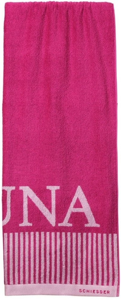 Ein hochwertiges Schiesser Saunatuch Rom in der Größe 75x200 cm aus 100% Baumwolle in Fuchsia. Ideal für Sauna und Wellness mit zeitlosem Design, Schiesser Stickerei und hoher Saugfähigkeit. Pflegeleicht bei 60°C waschbar und trocknergeeignet. Erhältlich in Anthrazit, Hellblau, Fuchsia und Türkis.