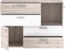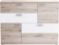 Material: Holzwerkstoff Korpus: Sandeiche Dekor Front: Sandeiche Dekor und weiß Dekor Griffe: alufarbig 2 Türen und 4 Schubkästen Schubkästen mit Metalllaufleisten Türen mit Metallschaniere Zerlegte Ware