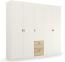 Der Rauch Möbel Homey by Quadra Spin Schrank ist ein eleganter 5-türiger Drehtürenschrank in Weiß mit den Maßen 226 x 210 x 54 cm. Die auffälligen Lederlaschen in cognacbraun ermöglichen ein einfaches Öffnen der Türen und Schubladen. Mit verstellbaren Kleiderstangen und Fachböden bietet dieser Schrank viel Stauraum und sorgt für Ordnung. Hergestellt aus Holzwerkstoff, ist dieses Möbelstück zu 100% „Made in Germany“.