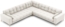 Micadoni Symmetrisches Ecksofa Mamaia – ein stilvolles 6-Sitzer Sofa in hellem Beige, das modernes Design mit durchdachter Funktionalität vereint. Die klaren Linien und das geometrische Raster der Steppung verleihen dem Sofa eine edle Leichtigkeit. Mit großzügigen Abmessungen von 256 x 256 x 75 cm und einer komfortablen Polyurethanschaum-Füllung ist es ideal für lange Filmabende oder entspannte Gespräche. Die charmanten goldenen Füße runden das Gesamtbild ab.