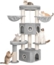 Der Kratzbaum mit einer Höhe von 163 cm bietet Ihrer großen Katze einen idealen Rückzugsort mit zwei gemütlichen Höhlen und einer geräumigen Plattform. Neun vollständig bezogene Sisalstämme ermöglichen es Ihrer Katze, nach Belieben zu kratzen, während die robuste Konstruktion mit einer Basis von 50x50 cm und rutschfesten EVA-Pads Stabilität gewährleistet. Der Katzenbaum ist in den Farben Hellgrau und Beige gehalten und besteht aus Spanplatte, Plüsch und Sisal.