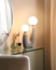 • Zwei kugelförmige Schirme für warmes Licht