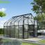 Das Vitavia Gewächshaus Diana 8300 kombiniert elegantes Design mit praktischer Funktionalität. Mit einer Grundfläche von ca. 8,3 m² und Außenmaßen von B 2,64 x T 3,21 x H 2,55 m bietet es ausreichend Platz für Ihre Pflanzen. Die pulverbeschichtete schwarze Aluminiumkonstruktion gewährleistet Langlebigkeit und Korrosionsschutz. Die Verglasung besteht aus ca. 4 mm starken Hohlkammerplatten und Sicherheitsglas. Die Doppelschiebetür (1,22 x 2,00 m) ermöglicht einen bequemen Zugang.