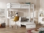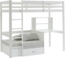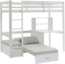 Das Hochbett GOLIATH III vereint Funktionalität und Stil in einem. Es bietet eine Liegefläche von 90x200 cm und ist aus massivem Kiefernholz in Weiß gefertigt. Mit einem integrierten Schreibtisch, zwei Regalen und einem Schlafsofa, das sich in ein Zusatzbett verwandeln lässt, ist es ideal für Kinder. Der Bettkasten und die hohe Traglast von 120 kg sorgen für zusätzlichen Stauraum und Stabilität.