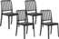 Praktisches 4er Set Gartenstühle aus strapazierfähigem Kunststoff in Schwarz. Ideal für den Innen- und Außenbereich, bieten diese modernen Stühle eine hohe Witterungsbeständigkeit und sind leicht zu transportieren. Dank des minimalistischen Designs und der fehlenden Armlehnen sind die Stühle stapelbar und platzsparend. Mit einer maximalen Belastung von 200 kg sind sie sowohl robust als auch pflegeleicht.