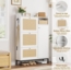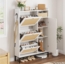 Der GarveeMore Schuhschrank aus Rattan bietet mit seinen 3 Klappschubladen und 4-stufigen Regalen Platz für 32 bis 40 Paar Schuhe. Die verstellbaren Einlegeböden und die anpassbare Blende ermöglichen eine flexible Nutzung für verschiedene Schuhtypen. Mit einem modernen Design und stabilen Metallbeinen ist dieser Schuhschrank ideal für Eingangsbereiche oder Schlafzimmer. Die geräuscharmen Türen und die praktische Oberseite für Dekoration runden das Gesamtbild ab.