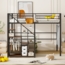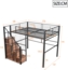 Bett 140x200 cm mit Stauraum und Leiter – schwarzes Metallhochbett für Jugendliche