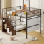 Bett 140x200 cm mit Stauraum und Leiter – schwarzes Metallhochbett für Jugendliche Bild 1