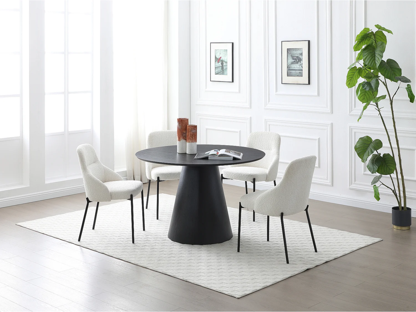 Der runde Esstisch BURSANA von Vente-unique bietet Platz für bis zu 4 Personen und überzeugt durch sein elegantes Design in Schwarz mit einem hochwertigen Eschenfurnier. Der Tisch ist ideal für gesellige Zusammenkünfte und schafft eine einladende Atmosphäre. Mit einer maximalen Traglast von 75 kg und einem stabilen zentralen Fuß ist er sowohl funktional als auch stilvoll.