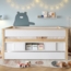 Das OKWISH halbhohe Kinderbett 90x200 cm bietet eine ideale Kombination aus Funktionalität und Sicherheit. Mit einem ausziehbaren Gästebett, Stauraumfächern und einem Sicherheitsgeländer ist es perfekt für Familien. Das Bett aus Kiefernholz, MDF und Sperrholz überzeugt durch Robustheit und ein harmonisches Farbspiel aus Weiß und Natur. Die durchdachte Konstruktion sorgt für ein sicheres Schlafumfeld und eine Tragfähigkeit von bis zu 120 kg.