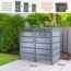 Diese Mülltonnenbox bietet Platz für zwei Mülltonnen bis 240 Liter und vereint modernes Design mit hoher Funktionalität. Gefertigt aus verzinktem, pulverbeschichtetem Stahl in der Farbe Anthrazitgrau RAL 7016, ist sie wetterfest und korrosionsbeständig. Mit einem Soft-Close-Deckel und Gasdruckfedern ermöglicht sie ein leises und bequemes Öffnen. Die integrierten Schlösser und das Kettenzug-System sorgen für Sicherheit und Hygiene.