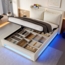 Dieses elegante Polsterbett in Beige mit den Maßen 140x200 cm vereint modernen Luxus und praktische Funktionalität. Das Kopfteil bietet Ablagefächer, einen USB-Type-C-Anschluss und ein sanftes Nachtlicht. Die seitlichen LED-Streifen sorgen für stimmungsvolles Licht, während das hydraulische Stauraumsystem großzügigen Platz unter dem Bett bietet. Robuste Materialien und ein ergonomisches Design garantieren Langlebigkeit und optimalen Sitzkomfort.