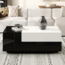 Merax Couchtisch 100*50*38cm Hochglanz-kaffeetisch, Wohnzimmertisch mit 1 Schublade, Beistelltisch mit Schiebeplatte, Geometrischer Tisch, mit schwarz-weißem Nähdesign Bild 1