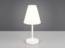 Kabellose Akku Tischleuchte in Weiß, Höhe 29 cm. Diese elegante Tischlampe aus weißem Metall mit einem weißen Stoffschirm sorgt für warmes, angenehmes Licht. Der integrierte Akku ermöglicht kabellosen Einsatz und lässt sich über das mitgelieferte USB-C Ladekabel aufladen. Mit einer Leuchtdauer von bis zu 5 Stunden und einem 4-fach Dimmschalter am Fuß bietet sie Flexibilität und Komfort für jeden Raum.
