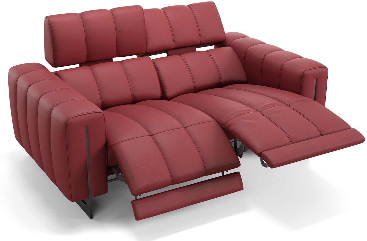 Das Sofanella 2-Sitzer Veneto Ledersofa in Rot vereint nostalgisches Design mit modernem Komfort. Die klaren Linien und die kubische Silhouette werden durch Ziernähte und moderne Metallkufen ergänzt. Die elektrische Relax-Funktion ermöglicht individuelle Einstellungen für Sitztiefe und Kopflehnen. Italienisches Design, atmungsaktives Rindsleder und hochdichte Polsterung sorgen für Luxus und Langlebigkeit.