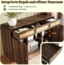 Elegantes Sideboard in Nussbaum-Optik mit Rattan-Fronten und goldfarbenen Griffen. Mit 3 Schubladen, 2 Schränken und einem offenen Regal bietet es flexiblen Stauraum. Die robuste Konstruktion aus Spanplatte und MDF ist kippsicher und trägt bis zu 50 kg. Die Montage ist einfach und das Möbelstück ist schnell einsatzbereit.