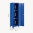 Der Einzelspind Kurikka in Blau bietet mit seinen kompakten Abmessungen von 137 x 38 x 38 cm ausreichend Platz für Arbeitskleidung und Werkstattmaterial. Die abschließbare Tür mit Magnetverschluss und Handgriff ermöglicht ein einfaches Öffnen. Zwei praktische Ablagen im Inneren sorgen für eine organisierte Lagerung. Lüftungsschlitze gewährleisten eine angemessene Luftzirkulation, während die vier robusten Stellfüße für Stabilität sorgen. Die pflegeleichte Oberfläche lässt sich mühelos reinigen.