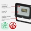 Beschreibung Der LED Strahler JARO 1060 zur Wandmontage ist ein extrem energieeffizienter LED-Fluter mit 10W Leistung, der höchsten Ansprüchen gerecht wird. Durch die Schutzart IP65 (staubdicht und strahlwassergeschützt) eignet er sich nicht nur für die Ausleuchtung im Innenbereich, sondern idealerweise für den Einsatz in Außenbereichen. Der LED Außenstrahler überzeugt außerdem durch seine extrem flache Bauform und seine Robustheit. Die verbauten Everlight SMD-LE Ds sorgen für eine außergewöhnlich lange Lebensdauer und ihre spezielle Lichtstreuung für großflächige Ausleuchtung. Zudem überzeugt der LED-Strahler durch folgende Eigenschaften: Leistung: 10W Lichtstrom: 1150lm Frontscheibe aus Sicherheitsglas Farbtemperatur: 6500K Lieferumfang LED Strahler JARO 1060