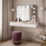 Hervorzuheben ist, dass der Schminktisch Aurora mit einem großen Spiegel ausgestattet ist, der von einem Kranz aus zwölf eleganten LED-Glühbirnen umgeben ist. Ihre symmetrische Anordnung garantiert eine perfekte Beleuchtung, die Ihnen ein Make-up auf höchstem Niveau ermöglicht.