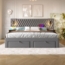 Das Merax Polsterbett ist ein stilvolles Doppelbett mit den Maßen 160x200 cm, das durch sein hochwertiges Vintage-Design besticht. Es bietet nicht nur Komfort, sondern auch praktischen Stauraum mit zwei Nachttischen und vier Schubladen. Die integrierten Leselampen mit USB- und Type C-Ladeanschlüssen sorgen für eine angenehme Beleuchtung und ermöglichen das Laden Ihrer Geräte. Der stabile Metallrahmen und die Massivholzlatten garantieren eine hohe Stabilität und ein ruhiges Schlaferlebnis.