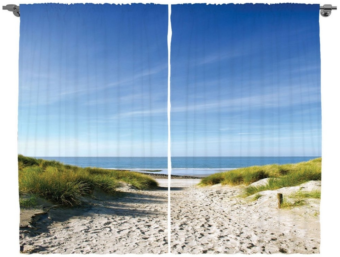 Abakuhaus Gardine Schlafzimmer Kräuselband Vorhang mit Schlaufen und Haken, Ozean Sandy Weg zum Ozean