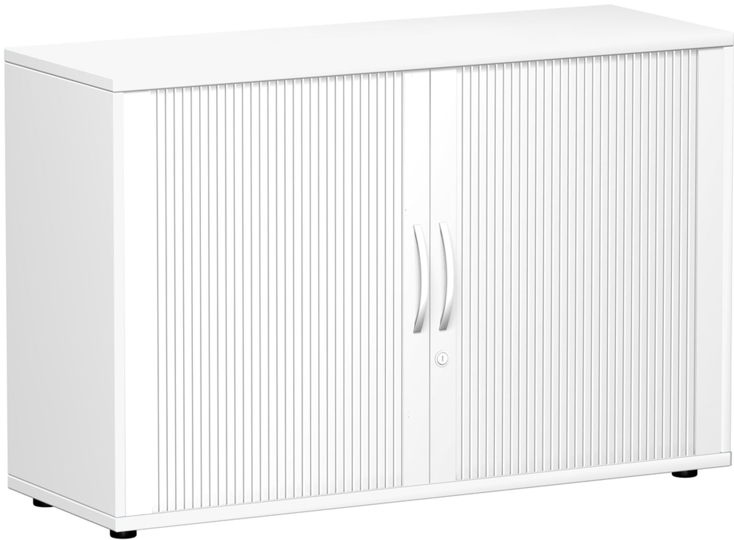 Der Querrollladenschrank Oberboden ist ein hochwertiges Schranksystem mit einer Größe von 120 x 42 x 80 cm. Der Schrank verfügt über einen 25 mm starken Oberboden und ist in den Farben Silber und Weiß erhältlich. Die Böden des Schranks sind 19 mm stark und haben eine beidseitige Melaminharz-Beschichtung, was für Stabilität und Langlebigkeit sorgt. Die Rückwand ist eingenutet und trägt ebenfalls zur Stabilität bei. Die Einlegeböden sind in 32 mm Stufen verstellbar, sodass Sie den Schrank flexibel an Ihre Bedürfnisse anpassen können. Die Türen des Schranks sind mit stabilen Metallscharnieren und Türdämpfern ausgestattet, die ein sanftes Schließen ermöglichen. Die satinierten Glasfronten verleihen dem Schrank eine hochwertige Optik. Die Flügeltüren schlagen auf und haben eine Selbstzuhaltung. Im Inneren des Schranks finden Sie verschiedene Möglichkeiten zur optimalen Raumnutzung, z.B. durch Hängeregistraturen, die in einer Ordnerhöhe angebracht werden können. Der Schrank wird fertig montiert geliefert, Anbauelemente wie Türen oder Schubladen müssen noch eingesetzt werden. Die Maße des Schranks betragen 1200 x 425 x 798 mm und das Gewicht beträgt 46 kg.