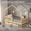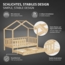 Dieses liebevoll gestaltete Kinderbett in Hausform bietet Gemütlichkeit und kreativen Spielspaß im Kinderzimmer. Das offene Holzgestell aus massivem Kiefernholz mit Hausdach-Optik lädt zum Spielen und Entspannen ein. Mit einer Liegefläche von 70 x 140 cm ist es ideal für Kleinkinder bis etwa 6 Jahre geeignet. Zwei praktische Schubkästen unter dem Bett sorgen für zusätzlichen Stauraum. Die inklusive Kaltschaummatratze bietet gesunde Unterstützung und ist allergikergeeignet.