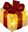 - Farbe: Gelb mit roten glitzernden Schleifen