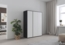 rauch Kleiderschrank Nabila, Drehtürenschrank, Garderobenschrank, 3-türig, mit 1 Kleiderstange und 3 Einlegeböden, Farbe Weiß/Grau metallic, Schwarz, mit Push-to-Open Funktion, 140x194x53cm